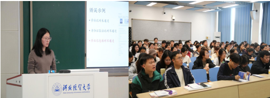 会上,研究生学院招生办张艳娥老师为同学们全面解读全国硕士研究生招生政策,并结合实际案例系统梳理了考研流程,帮助大家清晰把握研考重要时间节点与注意事项。她强调,要结合自身实力合理规划院校选择,密切关注招生政策动态,提前做好备考规划与风险预判,确保备考过程科学高效。此外,张老师还介绍了河北经贸大学研究生教育近年来发展情况,全面展示了我校的办学优势、教学成果与就业前景。